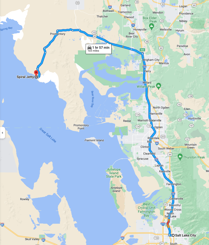 The directions on the DIA art website are very accurate but they miss to mention the Golden Spike National Monument which is on the way (near Promontory on the map). It would be a pity not to visit it, so plan an extra 30 minutes/1h for it. Golden Spike is the location where the Union Pacific Railroad met the Central Pacific, thus creating the first transcontinental railroad in 1869.